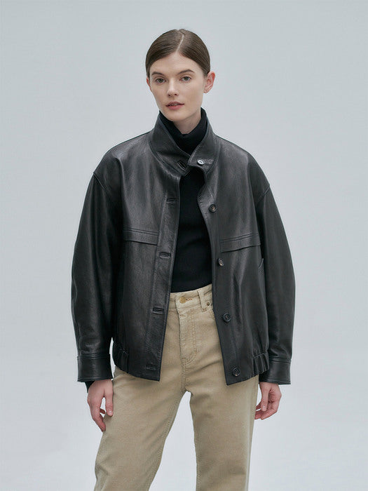 NILBY P 21 FN Leather Blouson Jacket Black #
