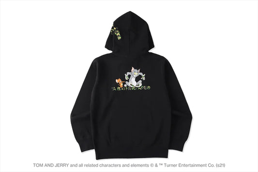 BAPE x Tom and Jerry Footprints Pullover Hoodie Black