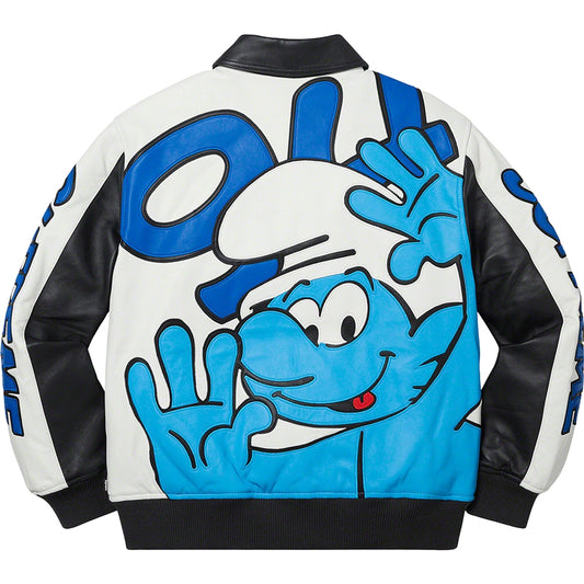 Supreme Smurfs Leather Varsity Jacket Black