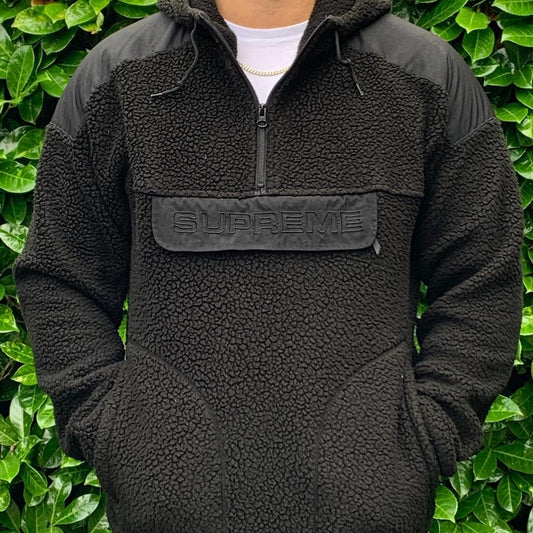 Supreme Polartec Half Zip Hooded Sweatshirt Black #