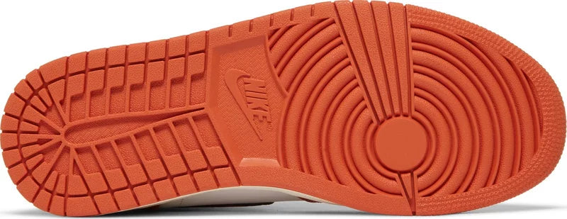 Description : The leather upper of the Air Jordan 1 Retro High OG Starfish features a white base, contrasting orange overlays, and a high-cut collar in chocolate brown.
