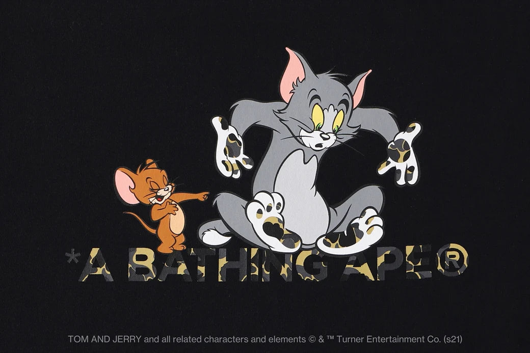 BAPE x Tom and Jerry Footprints Madison Avenue L/S Tee Black