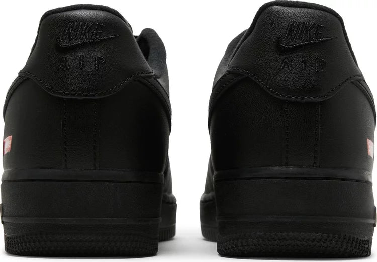 This Air Force 1 Low is comprised of an all-black leather upper with matching soles and detailing. A red Supreme Box Logo placed on the outside heel completes the design.
