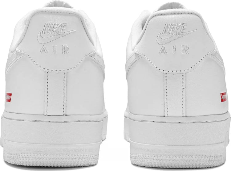Description : Supreme and Nike paid homage to an NYC classic with the release of the Nike Air Force 1 Low Supreme White. This collaboration adds Supreme’s world-renowned Box Logo to the side of a traditional all-white Air Force 1 design. This Air Force 1 Low is comprised of an all-white leather upper with matching soles and detailing. A red Supreme Box Logo placed on the outside heel completes the design. These sneakers released in March of 2020.