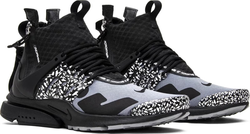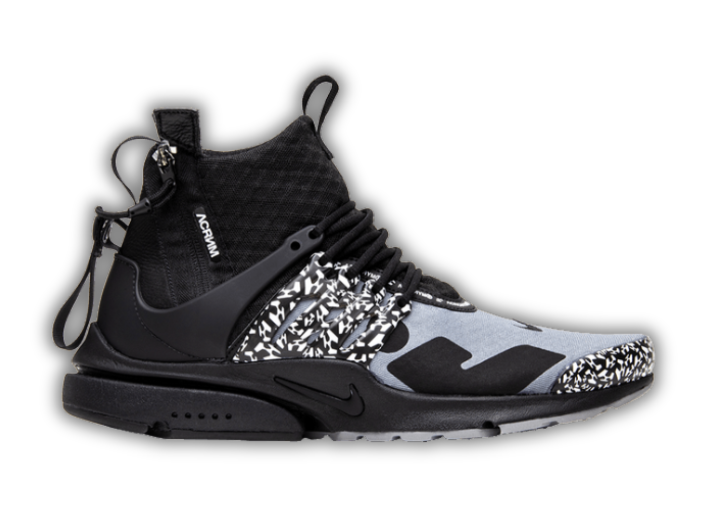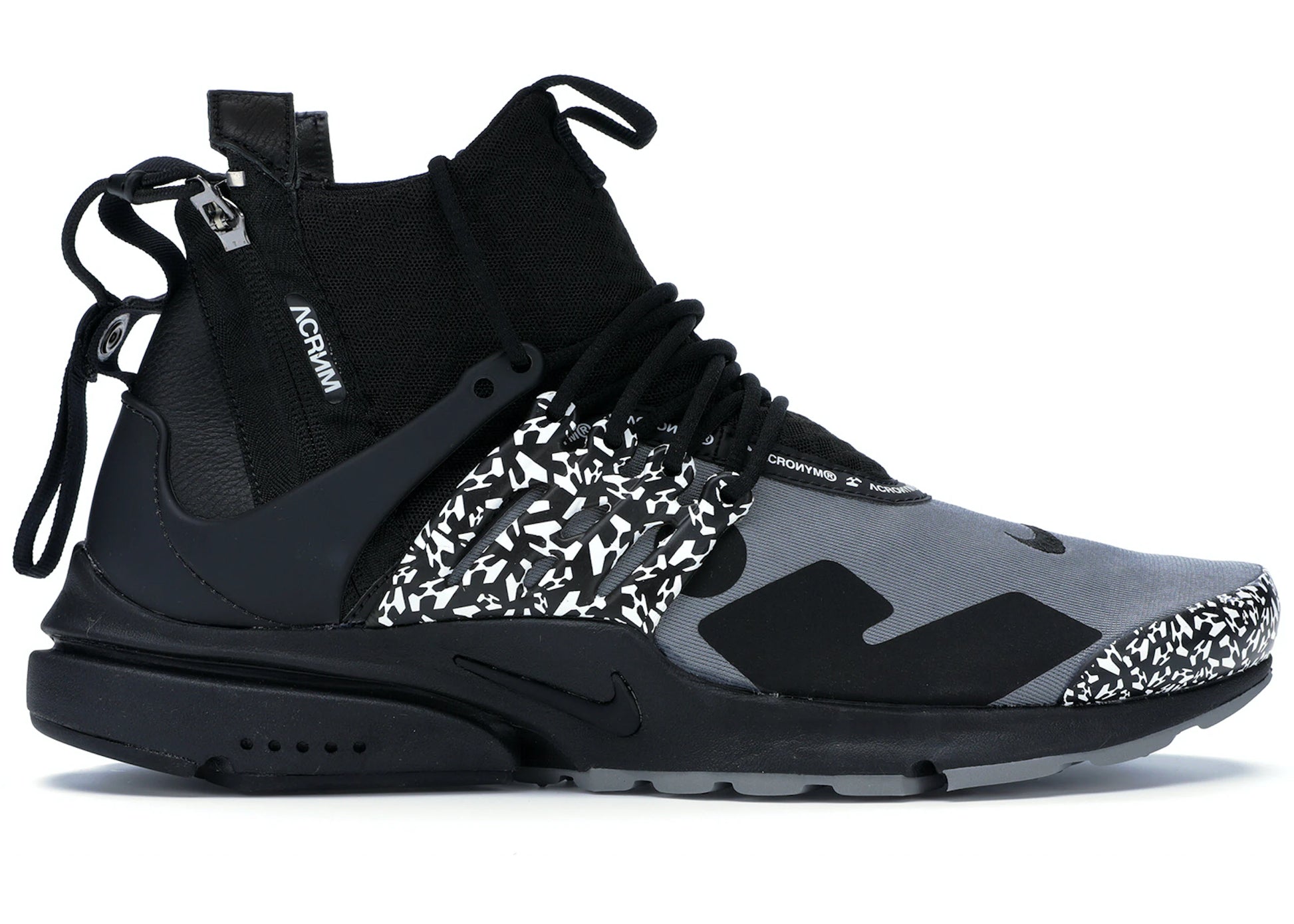 Description : What’s cooler than being cool? These Acronym Nike Air Presto Mid Cool Greys. Releasing alongside the Pink Racer and Dynamic Yellow colorways, this version of the Acronym Presto features a clean cool grey and black upper highlighted with a unique White/Black print on its cage and toe overlay. Acronym branded taping across the toe seam finishes off the design.