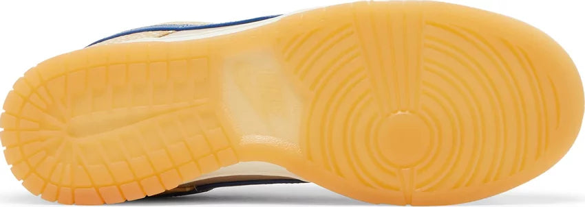The limited edition Nike Dunk is designed to look like a sesame seed bagel, with a sanddrift and university gold base, sesame seed coating across the sneaker. Nike used a wood print graphic on the insoles complimented with blue swooshes and heel tabs and a translucent gum brown outsole.