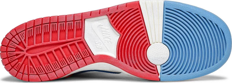 Description : The graphics and color palette on Nike SB Dunk High Pro Ishod Wair x Magnus Walker pay homage to a German sports car made famous in designer Magnus Walker’s 2012 film "Urban Outlaw". Red canvas and white leather make up the upper, while light blue Swooshes are prominent on the sides.