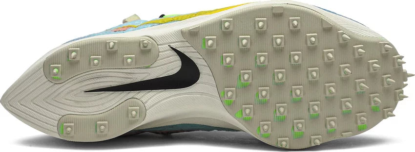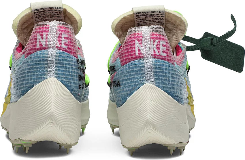Description : Virgil Abloh and Nike enroll a new silhouette in their ongoing collaboration with the women's Nike Vapor Street Off-White Polarized Blue (W). These sneakers made their debut on the Off-White Spring / Summer 2019 Women’s runway during Paris Fashion Week. This collection featured three new track-inspired Nike designs, all of which are new territory in their collaborative history. This Vapor Street is composed of a polarized blue waffle-textured upper with highlighted yellow and pink Swooshes. Off-White signature branding is present in the orange Swoosh tab, inner foot text, and zip tie. A foam tongue, secondary lace system, ZoomFly midsole, and spiked outsole completes the design.