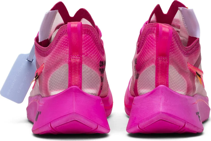 Description : Virgil looks to continue his 2018 Off-White and Nike collab tour with the Nike Zoom Fly Off-White Pink. This sneaker comes with a translucent upper featuring pink accents, a pink Nike "Swoosh", pink midsole, and a pink sole. The electrifying shoe released in October 2018.