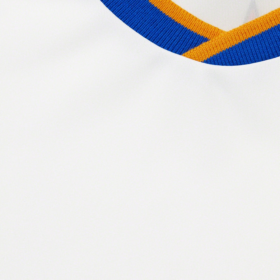 Description : Poly with stripe rib collar and armholes. Printed logos and graphics on chest, sleeves and back.