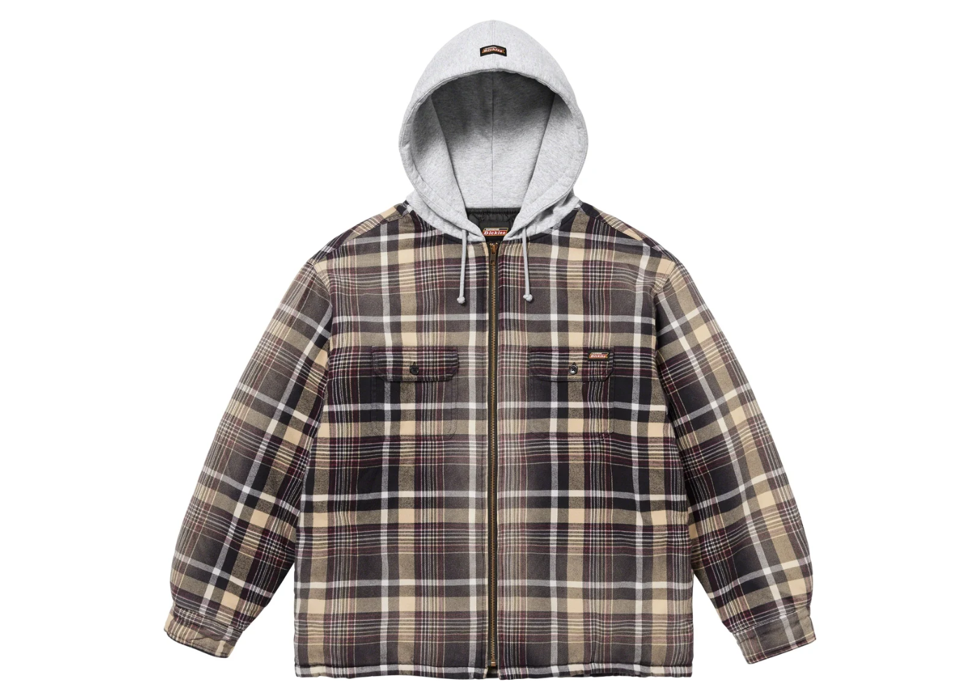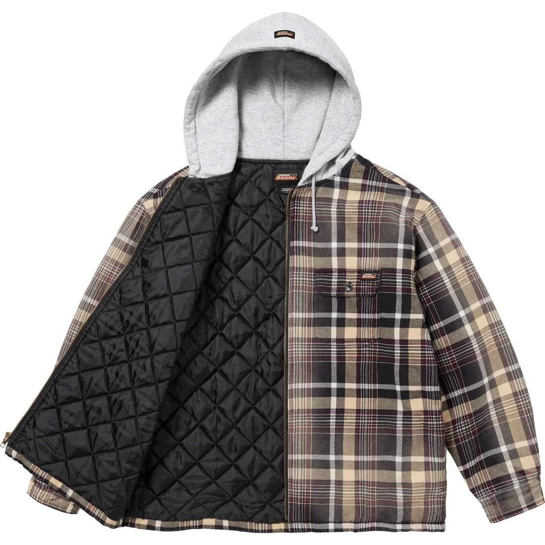 Supreme Dickies Plaid Hooded Zip Up Shirt Black