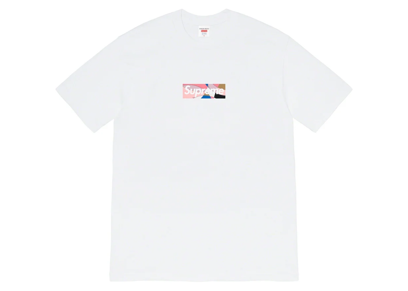 Description : This Supreme Box Logo T-shirt was made available as a part of the streetwear brand's Spring/Summer 2021 collaboration with Italian luxury brand, Emilio Pucci. The full Supreme Emilio Pucci Collaboration included 43 pieces from Silk Smoking Jackets to co-branded Zippo Lighters. Supreme's Box Logo t-shirts with Emilio Pucci were released in nine different color combinations, each of which features a different color of artwork inside the box logo. Emilio Pucci is known as ""The Prince of Prints"" and one of his popular prints is put on show in the background of this Supreme Box Logo T-shirt. The Supreme Emilio Pucci Box Logo T-shirt in white was released on June 10th, 2021.
