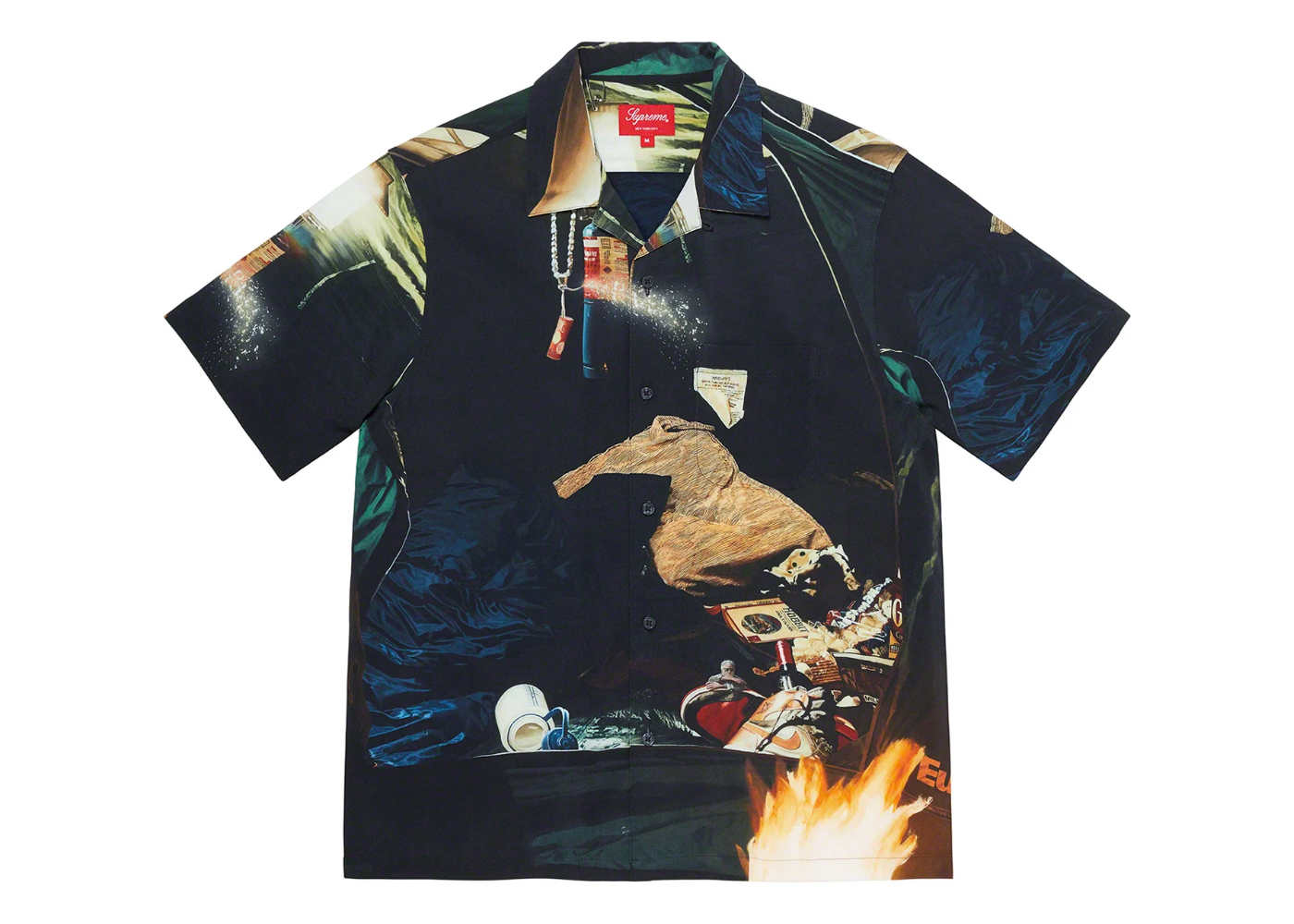 Description : Rayon with printed graphic and single chest pocket. Original artwork by Dan Colen.