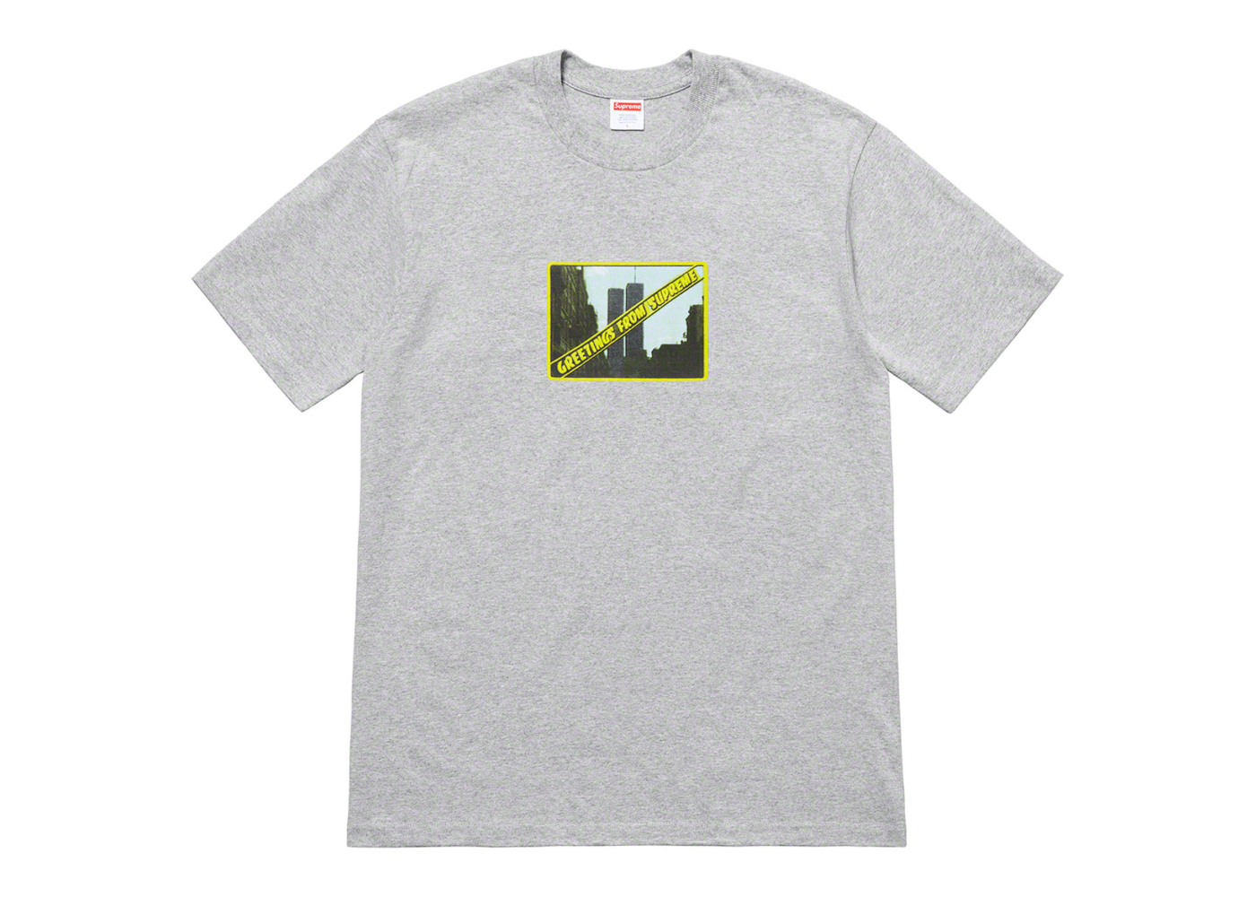 Description : Just in time for the hottest days of Summer, Supreme released their Summer Tees alongside a brand new photo tee as a part of their last drop in the month of June 2019. Dropped as a part of the Summer Tees selection was the Greetings Tee which features a greetings card with the New York skyline with the words "Greetings From Supreme" across the picture. The Supreme Greetings Tee dropped on Thursday, June 27th, 2019.