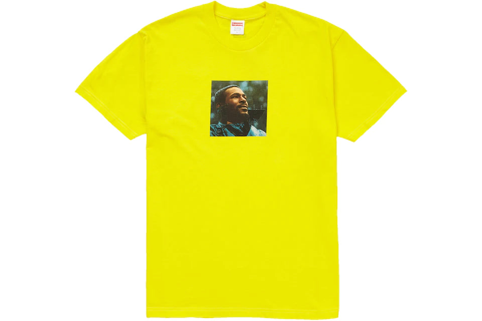 Description : "Woah, mercy mercy me." In week 17 of their FW18 drop schedule, Supreme paid homage to The Prince Of Soul himself, Marvin Gaye. The drop contained this Marvin Gaye Tee featuring imagery similar to what can be found on Marvin Gaye’s classic album "What’s Going On". The tee released on December 13th, 2018. Skip the mountains, valleys, and rivers and place a bid or buy now to get to your tee ASAP.