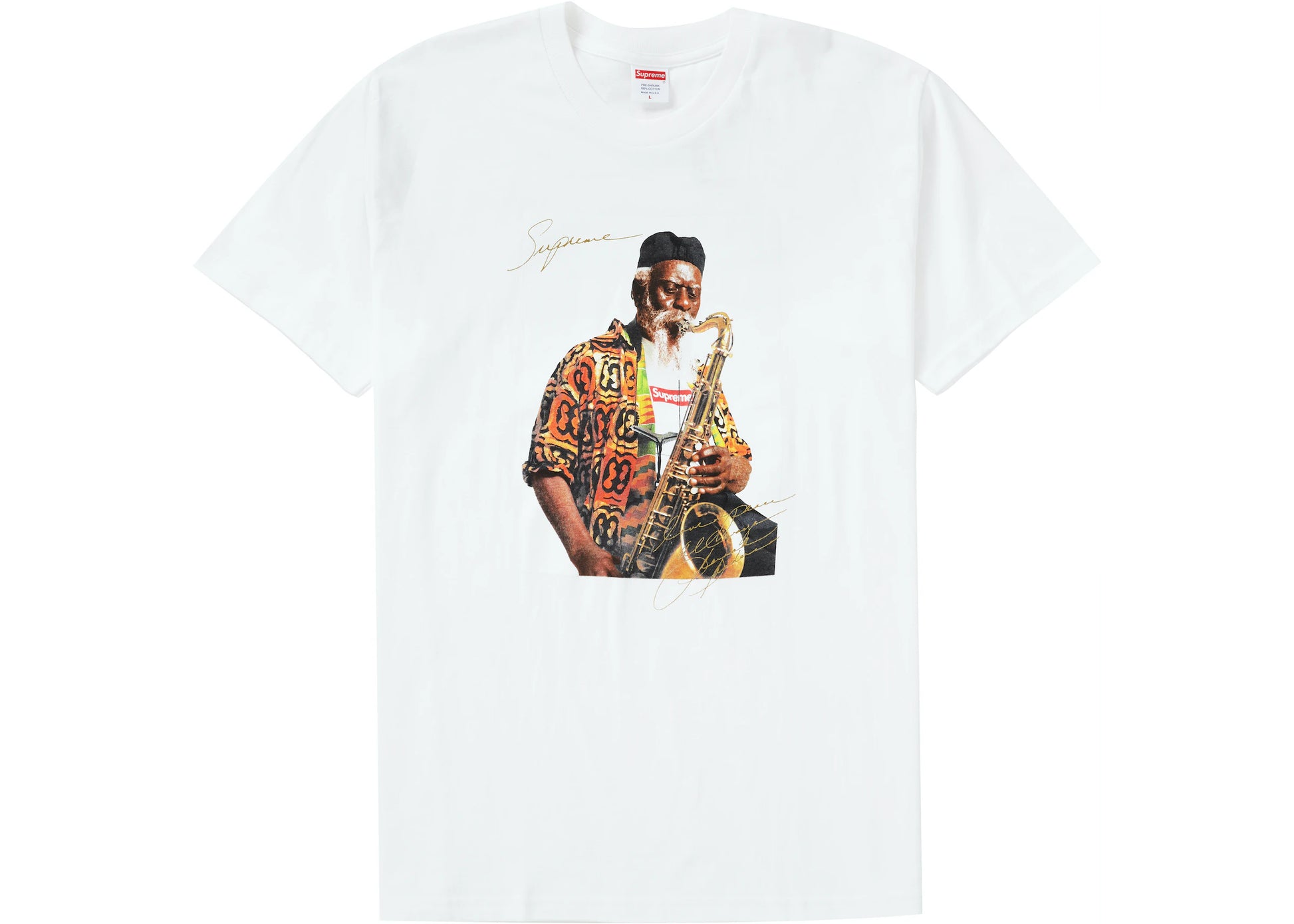 Description : The white Supreme Pharoah Sanders Tee released on August 20th, 2020, as a part of the brand's FW20 Week 1 drop. FW20's go at a photo tee features a graphic of the Grammy-winner playing sax in a Supreme box logo t-shirt.