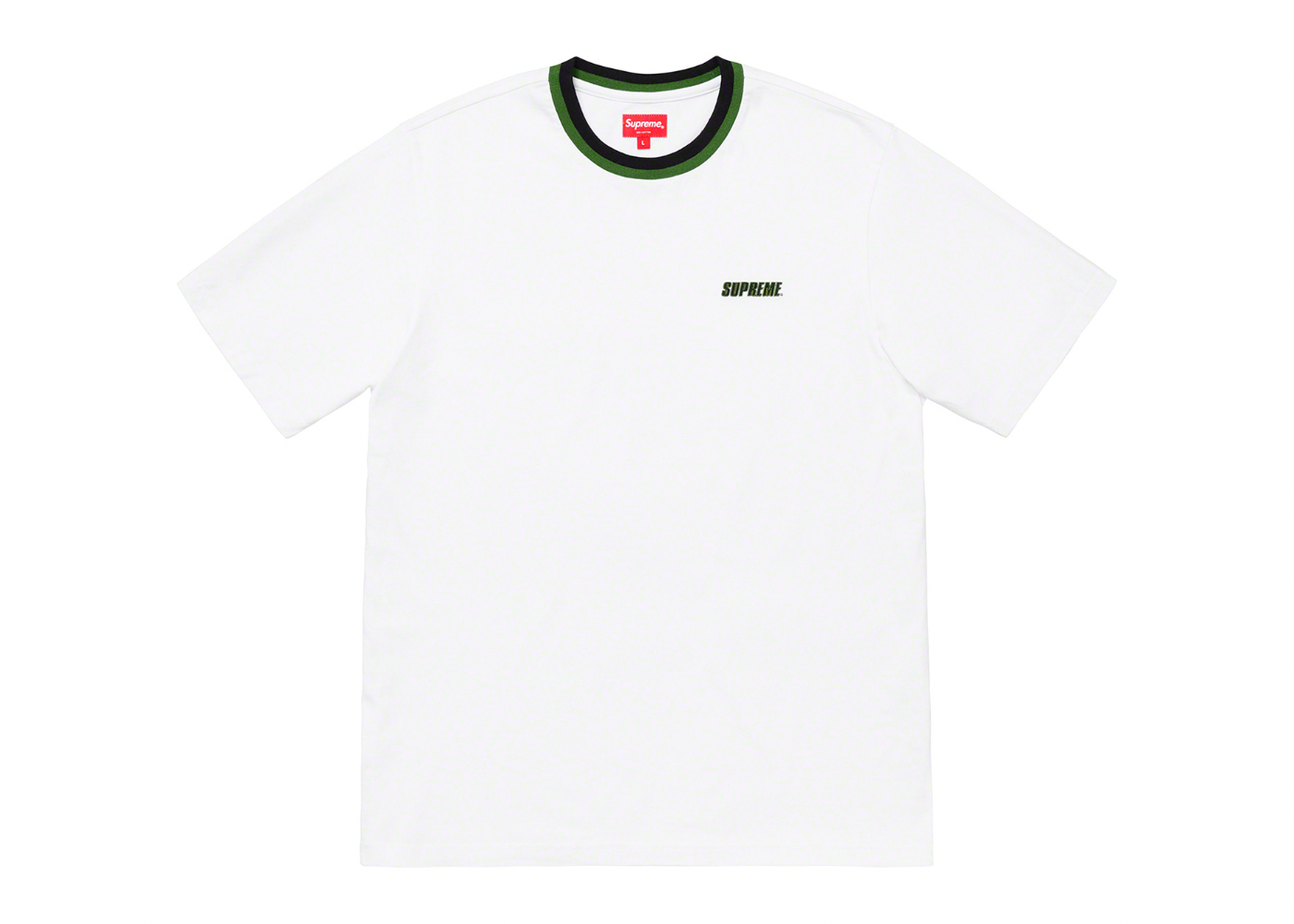 Description : All cotton jersey crewneck with stripe rib collar and embroidered logo on chest.