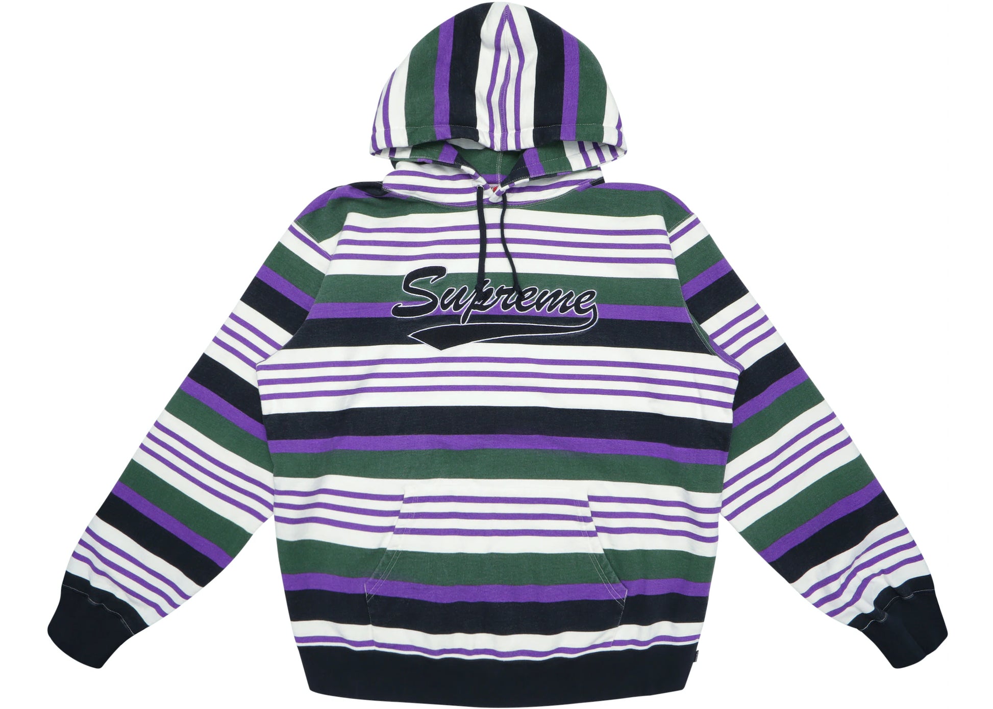 Description : The Supreme Striped Hooded Sweatshirt Purple was released by Supreme New York on March 8th, 2018.