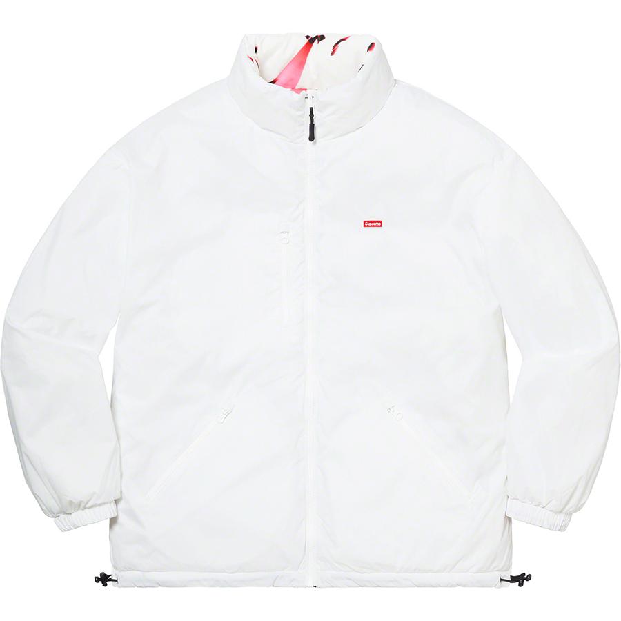 Description : Water resistant quilted poly with printed pattern, fill and full zip closure. Snap hand pockets at lower front. Elastic cuffs and interior elastic shockcord at hem. Solid reverse side with zip pockets at lower front and chest.