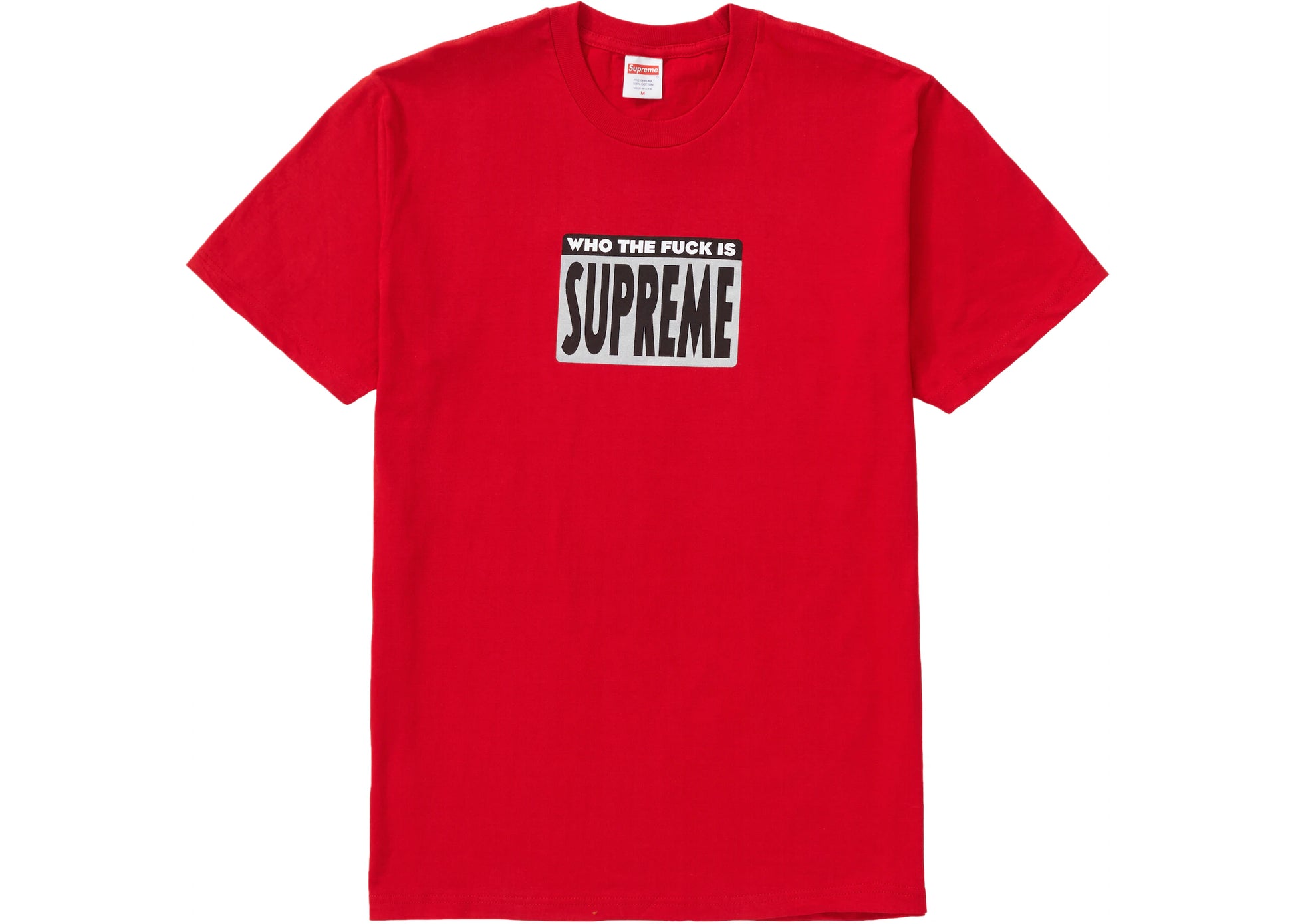 Description : Who the fuck is Supreme? Well, they're a company from New York, founded in 1994, that make popular clothes and wild accessories with their logo on them. The brand has been seen on the likes of Tyler, The Creator, Kanye West, and Travis Scott, mostly touting the brands eponymous logo. Supreme's Who The Fuck Tee released as a part of the brand's larger drop of tees during Week 6 of their Spring/Summer 2019 collection. The tee features the words "Who The Fuck Is Supreme" on the chest, once again showing off the brand's ability to be charmingly self-aware and edgy at the same time. Hopefully this product description pulled off something similar.